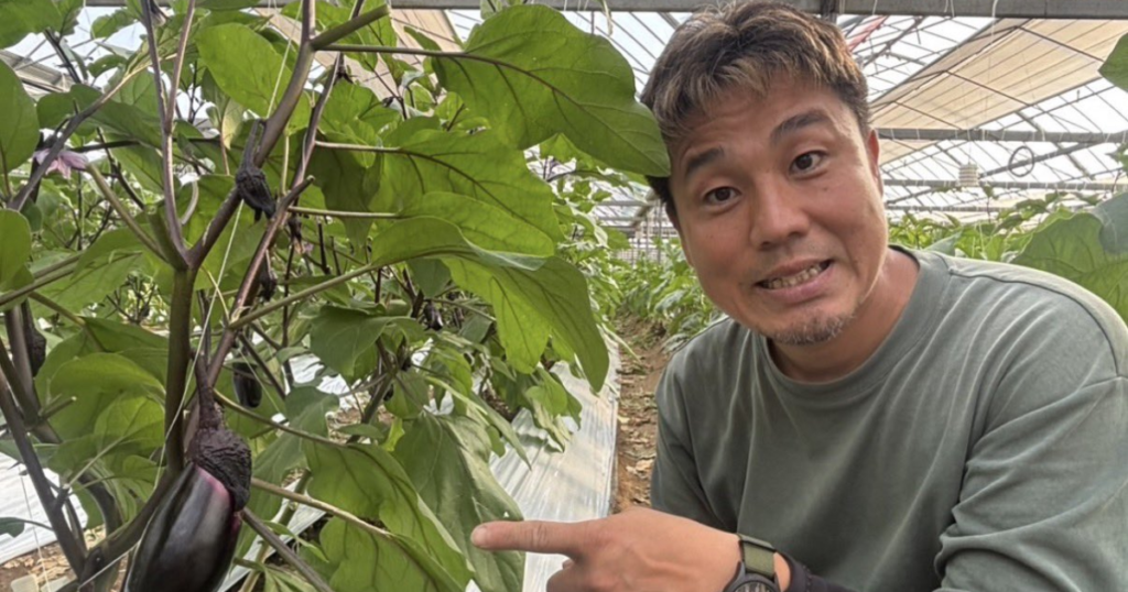 サラリーマンから逃げるように実家の農業をするようになり、現在は独立して30aほどのナス栽培をしています。