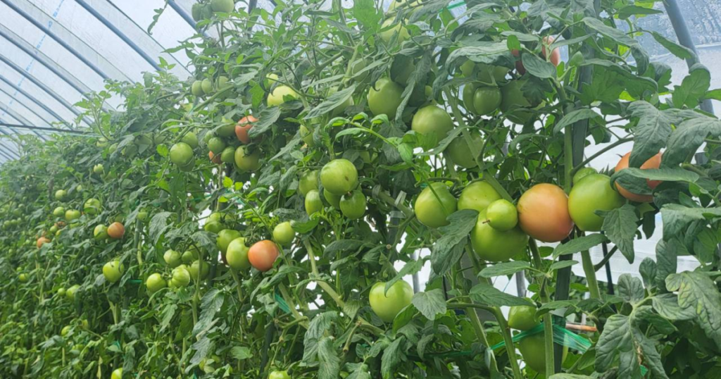 ハウス空間が広くなり、熱を逃がせるようになったことで、トマトの花が落ちにくくなりましたよ。