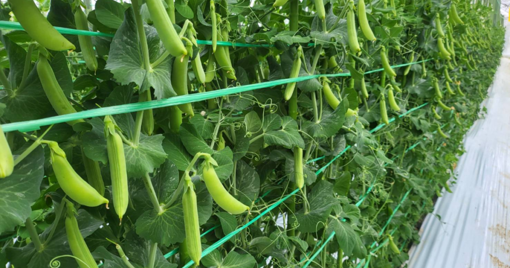 現在は4月からスナップエンドウ→6月から大玉トマトという作型で、30aほどのハウスで栽培しています。