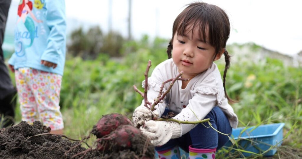・収穫体験でサツマイモを掘り上げた時の、子どもたちの喜びよう